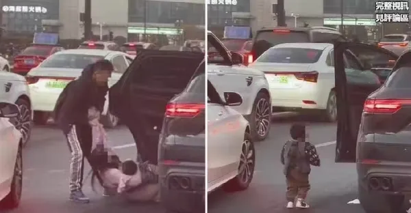 當街大暴走!夫強拖妻兒「丟包快車道」,人妻爬回駕駛座獨留幼童哭嚎,驚悚10秒畫面曝光:路人都怒了