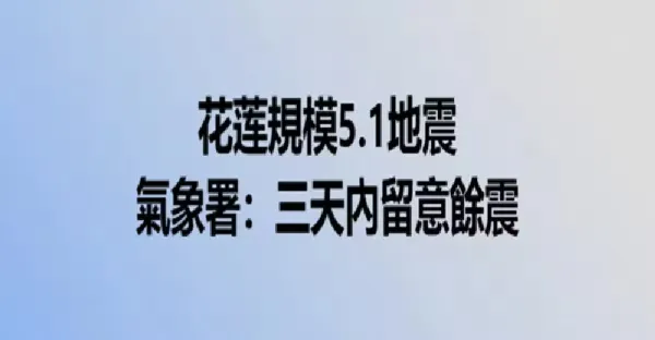 快訊 / 花蓮規模5.1地震 (台氣象署:三天內留意餘震)