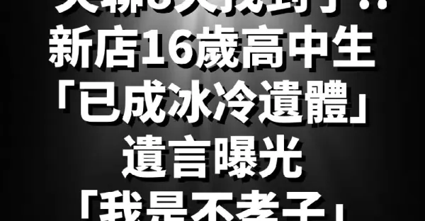 新店16歲高中生, 找到了!「已成冰冷遺體」...遺言曝光「我是不孝子」