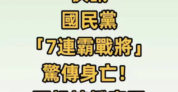 快訊/國民黨「7連霸戰將」驚傳身亡!死訊被證實了!