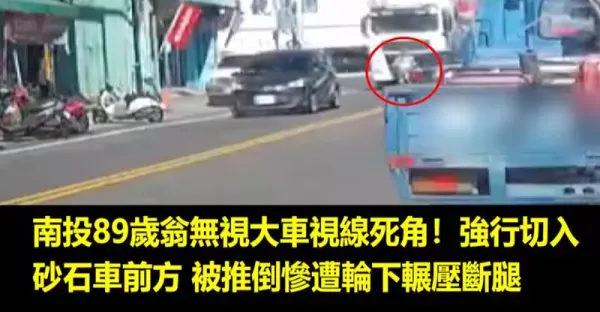 南投89歲翁無視大車視線死角!強行切入砂石車前方 被推倒慘遭輪下輾壓斷腿