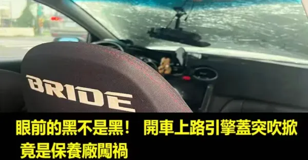 眼前的黑不是黑! 開車上路引擎蓋突吹掀 竟是保養廠闖禍