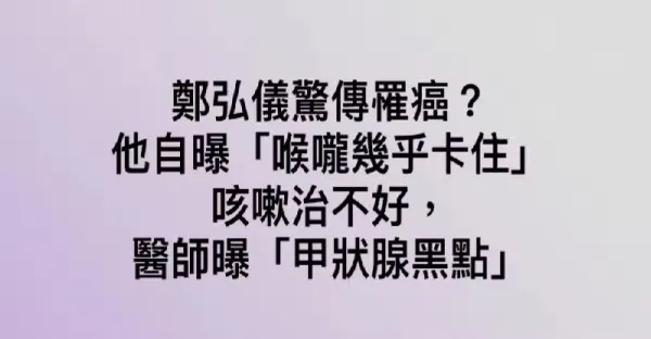鄭弘儀驚傳罹癌?他自曝「喉嚨幾乎卡住」咳嗽治不好,醫師曝「甲狀腺黑點」