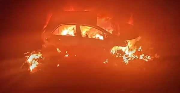 轎車失控起大火 司機慘變焦屍