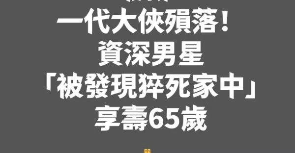 午間快訊!資深男星「被發現猝死家中」享壽65歲