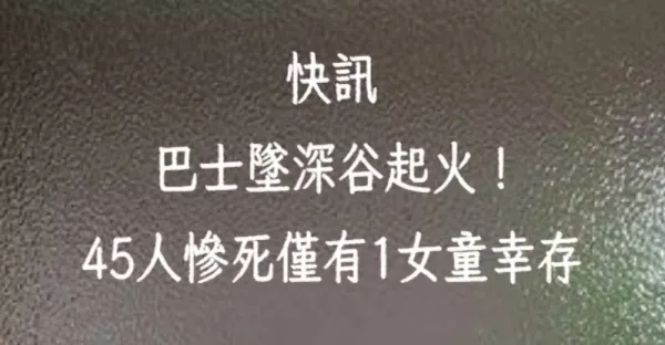 快訊/巴士墜深谷起火!45人慘死 僅有1女童僥倖生還……