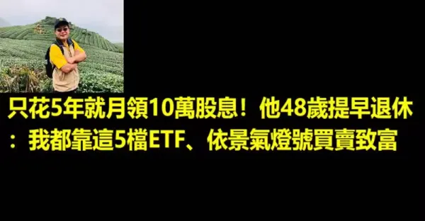 只花5年就月領10萬股息!他48歲提早退休:我都靠這5檔ETF、依景氣燈號買賣致富