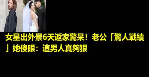 女星出外景6天返家驚呆!老公「驚人戰績」她傻眼:這男人真夠狠