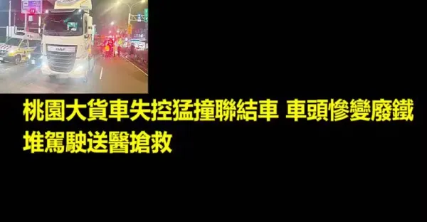 桃園大貨車失控猛撞聯結車 車頭慘變廢鐵堆駕駛送醫搶救
