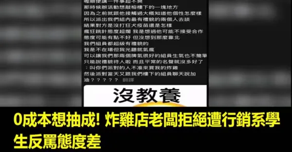 0成本想抽成! 炸雞店老闆拒絕遭行銷系學生反罵態度差