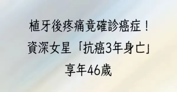 植牙後疼痛竟確診癌症!資深女星「抗癌3年身亡」享年46歲