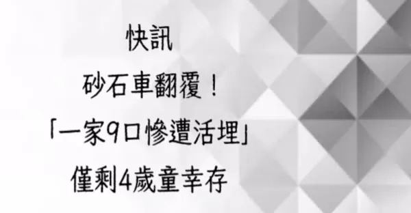 快訊/砂石車翻覆!「一家9口慘遭活埋」僅剩4歲童倖存