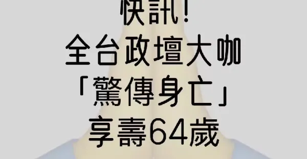 快訊/全台政壇大咖「驚傳身亡」享壽64歲!
