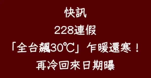 快訊/228連假「全台飆30℃」 乍暖還寒!再冷回來日期曝!