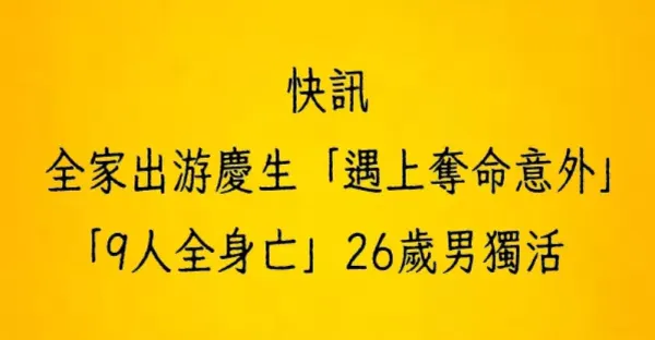 快訊/全家出遊慶生「遇上奪命意外」!「9人全身亡」26歲男獨活!