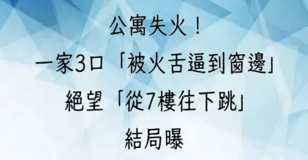 公寓失火!一家3口「被火舌逼到窗邊」 絕望從7樓往下跳……