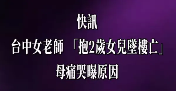 快訊/台中女老師「抱2歲女兒墜樓亡」!母痛哭曝光原因