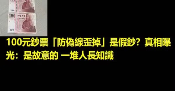 100元鈔票「防偽線歪掉」是假鈔?真相曝光:是故意的 一堆人長知識