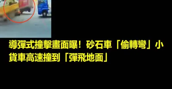 飛彈式撞擊畫面曝!砂石車「偷轉彎」小貨車高速撞到「彈飛地面」