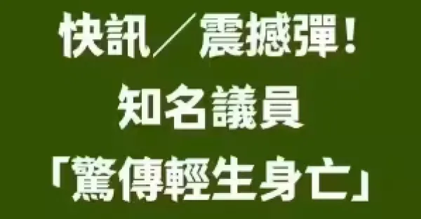 快訊/震撼彈! 知名議員「驚傳輕生身亡!」