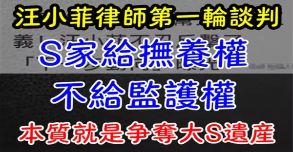 汪小菲律師第一輪談判,S家給撫養權不給監護權,根本就是爭奪大s遺產!