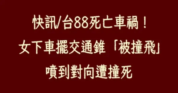 快訊/台88死亡車禍!女下車擺交通錐「被撞飛」噴到對向遭撞死