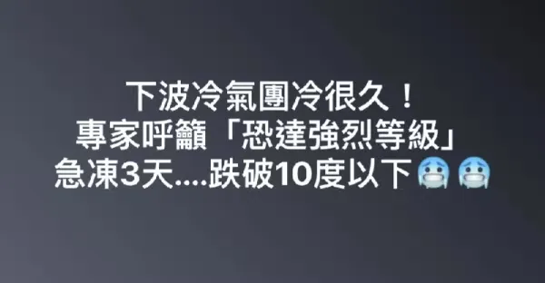 下波冷氣團冷很久!專家呼籲「恐達強烈等級」急凍3天....跌破10度以下