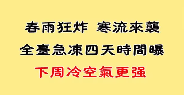 春雨狂炸!「這天」恐寒流再殺到,全台急凍4天時間曝,下周冷空氣更強,注意保暖!