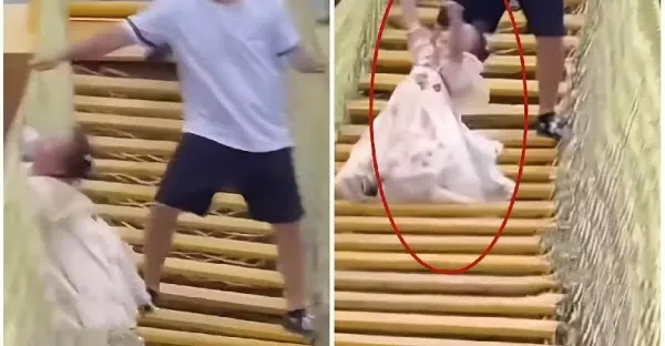 老爸死命搖晃吊橋!女兒嚇哭手一松「縫隙掉下去」結果悲劇了