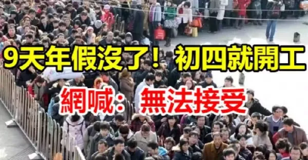 快訊/9天年假沒了!初四就開工,網喊:無法接受.