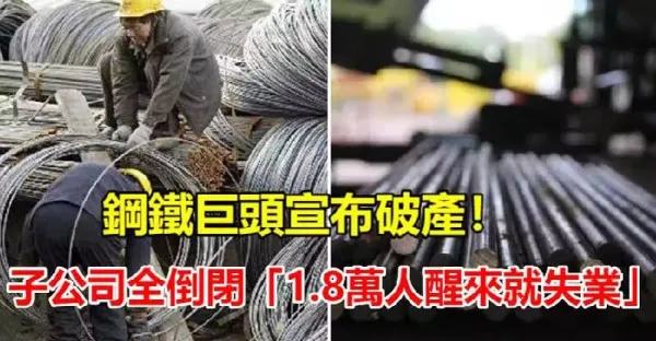 鋼鐵巨子宣布破產!子公司全倒閉「1.8萬人醒來就失業」