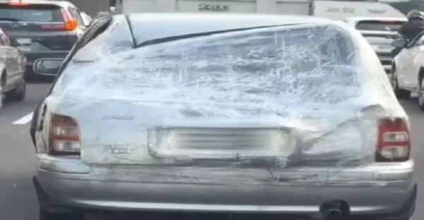 這樣也能開?鈑金凹玻璃破 汽車「膠帶包膜」開上路