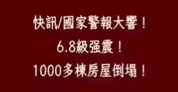 快訊/ 國家警報大響!6.8級強震! 逾千棟房屋倒塌!