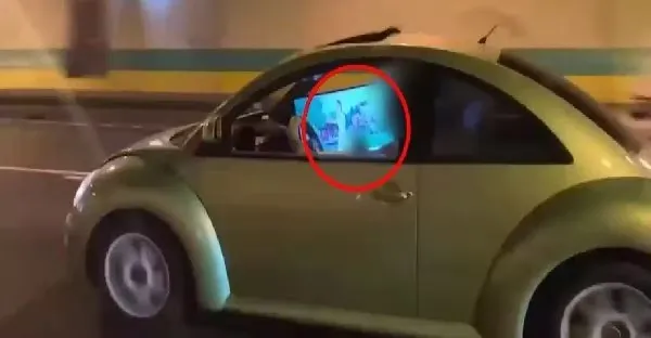 真的狂! 副駕駛座有台「曲面螢幕」國道上邊開邊播影片 遊走在違法邊緣 重罰