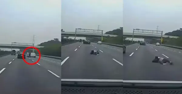 離譜畫面曝!國道疾駛「車內掉出一個人」駕駛連滾帶爬…驚嚇指數破表