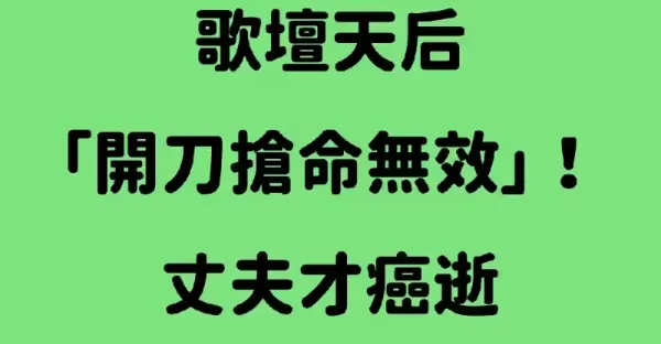 緊急/歌壇天后「開刀搶命無效」!丈夫才癌逝「她也跟著走了」!