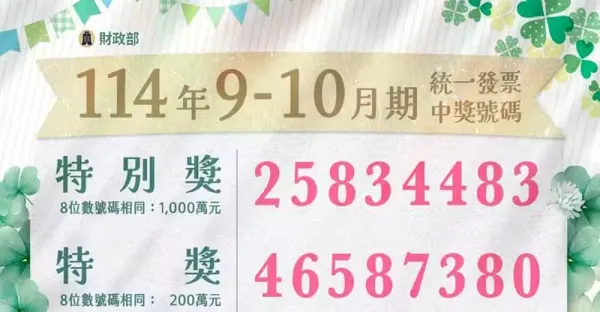 統一發票千萬特別獎開出 小7全家4張中獎最低花64元