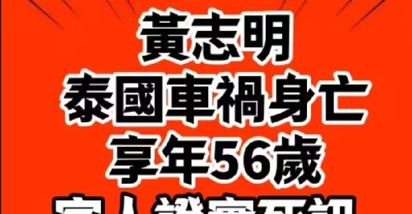黃志明在泰國發生交通事故身亡!!享年56歲 家人證實死訊「遺體運回大馬」