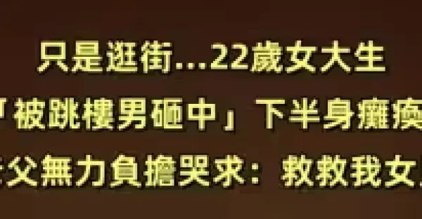 只是逛街......22歲女大生「被跳樓男砸中」下半身癱瘓,老父無力負擔哭求:救救我女兒