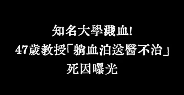 知名大學濺血!!! 47歲教授「躺血泊送醫不治」死因曝光