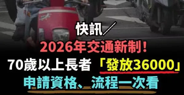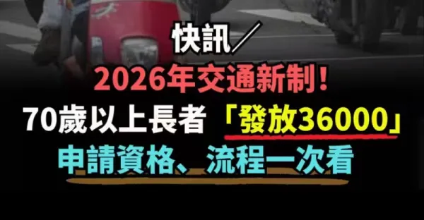 快訊/ 2026年交通新制!!! 70歲以上長者「發放36000」 申請資格、流程一次看