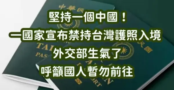 堅持一個中國!!! 一國家宣布「禁持台灣護照入境」外交部生氣了「呼籲國人暫勿前往」