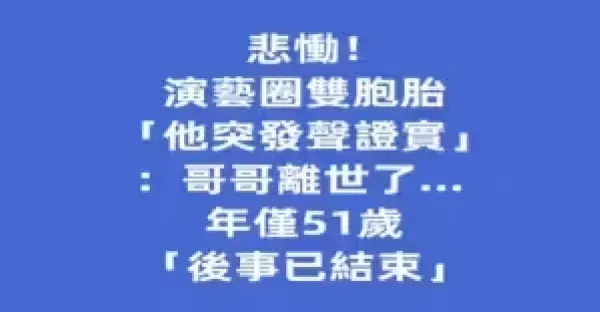 演藝圈悲慟 ! 演藝圈雙胞胎「他突發聲證實」:哥哥離世了... 年僅51歲「後事已結束」