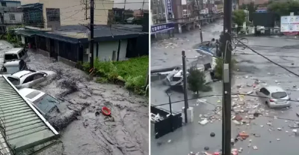花蓮光復大淹水! 商品全被衝出來,住戶爬屋頂避難,老人神情恍惚、孩子嚇哭