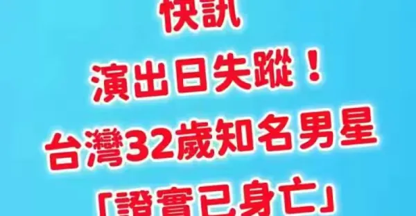 快訊/演出日失蹤 本土喜劇32歲知名男星「證實已身亡」!