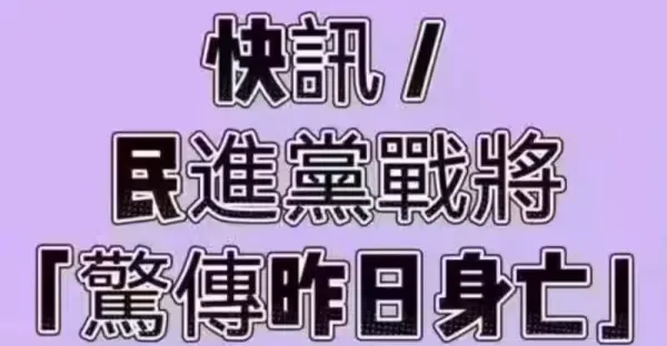 快訊/ 民進黨戰將「驚傳昨日身亡」!