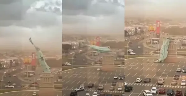 巴西暴風襲擊!吹毀自由女神像複製品 驚險過程全被拍