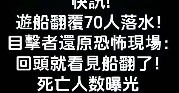 快訊/遊船翻覆70人落水!目擊者還原恐怖現場:回頭就看見船翻了! 死亡人數曝光!