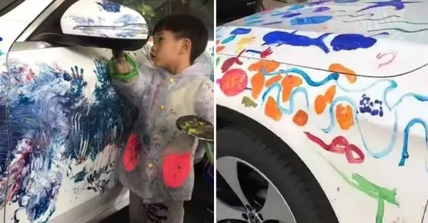百萬豪車被熊孩子「塗鴉」,車主看到車子後,表示這輩子都不會擦掉