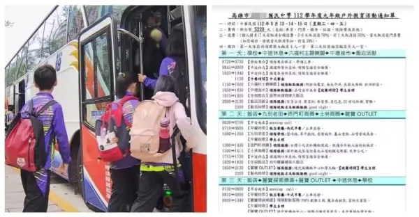 3天畢業旅行5220元!家長怒PO行程「午晚餐全自理、整天買買買」 家長氣炸